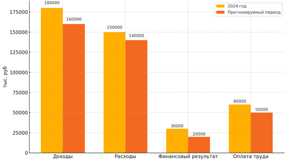 Как было отмечено ранее, прогнозируемые доходы учреждения составят 164 195,1 тыс. руб., что на 9 % превышает показатели 2024 года. При этом расходы учреждения увеличатся лишь на 4,7 %. В результате финансовый результат в прогнозируемом периоде достигнет 58 128,4 тыс. руб., что на 18,4 % больше по сравнению с 2024 годом.