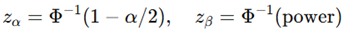 At a significance level of α = 0,05 and a target power of 0,80, the corresponding quantiles of the standard normal distribution are zα = 1,959964 and zβ = 0,841621. The square of the sum of these values equals 7,848880 [9].