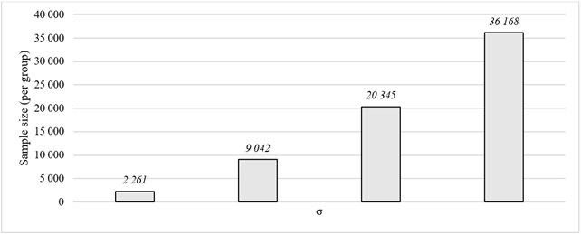 Figure 2. Influence of variance on sample size (mean-based metric), compiled by the author