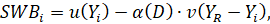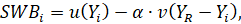 Поскольку индивид не просто учитывает уровень дохода референтной группы, но и осуществляет сравнение своего дохода с ним, и таким образом, оценку собственного положения относительно других членов этой группы, специфицируем эту функцию, выделив абсолютный и относительный компоненты: