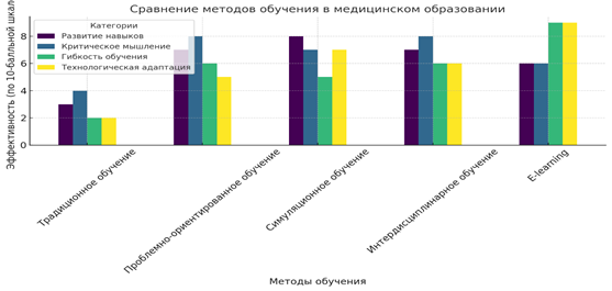 1. Проблемно-ориентированное обучение (PBL) основывается на использовании клинических случаев и проблем для стимуляции изучения и обсуждения теоретических знаний. Основное внимание уделяется развитию критического мышления, навыков решения проблем и работы в команде (Schmidt, 2008). В этом подходе студенты работают в группах, чтобы решить конкретные медицинские проблемы, что способствует развитию навыков критического мышления и командной работы. [5]