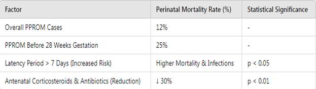 Objective of the study: To analyze perinatal mortality rates in pregnancies complicated by PPROM and identify factors influencing outcomes.