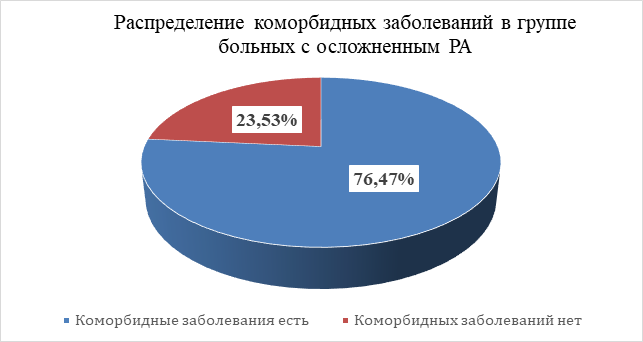 Анализ сопутствующих заболеваний, как предиктора риска, показал, что наличие коморбидной патологии, отягощает течение РА, способствуя развитию осложнений.
