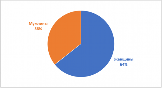Рисунок 1. Доля женщин и мужчин, прошедших анкетирование