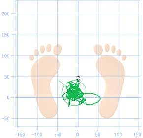 Повторный осмотр в конце курса вибротерапии: Выраженная положительная динамика многих постурологических параметров. И.п. на спине: Правая н/к в наружной ротации 450, левая – в 400, левая стопа в эквинусной установке не более 1000. Тест заднего шага – обе н/к поднимает с контропорой и подъемом таза, увеличивающимся по мере подъема ноги, но пока отсутствует жесткое прижатие противоположной половины таза. В основной стойке – небольшое смещение опоры и веса на правую н/к, правое колено в рекурвации, левое подсогнуто. С-м Тренделенбурга «+» с 2-х сторон: слева – уход в сторону от вертикальной оси - 100, без потери таза, справа – уход от вертикальной оси – 150, потери таза нет, полное сохранение стойки. При походке: полное включение стоп в шаговый маятник во всех фазах паттерна шага; полная стабилизация позвоночного столба. Стабилометрические результаты: Начнем с отрицательной динамики параметра «Среднее положение ЦД по оси Y», который показывает увеличение опоры на переднюю часть стоп. Но на самом деле это показатель положительной динамики перестройки постурологических отношений, когда это происходит на фоне центрации. При этом организм чувствует пока неуверенность и использует нагрузку на «носок» для лучшего теста опоры на обе стопы. Выраженная динамика включения опороспособности левой нижней конечности в виде центрации пациента с одновременным появлением отрицательного значения параметра «~X» -1.24, говорящего об опоре на левую ногу. Редкий наглядный пример стабилизации пациента в виде уменьшение значения «Максимальная амплитуда колебания ЦД по оси Х» в 10 раз. Остальные параметры также прекрасным образом демонстрируют именно положительный результат стабилизации и центрации пациента.