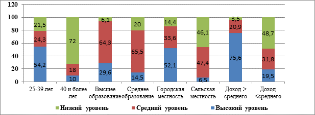 Характеристика взаимосвязей между информированностью респондентов и социальными параметрами (возрастом, уровнем дохода, местом жительства и т.д.) представлена на рис.2: