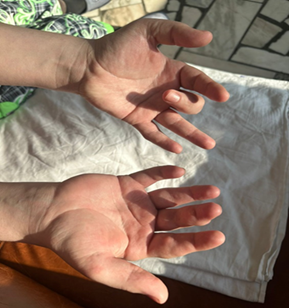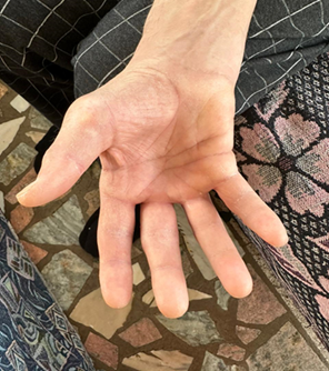 Рисунок 2. Дефигурация суставов правой кисти у пациента К. после пятой инъекции препарата анакинра