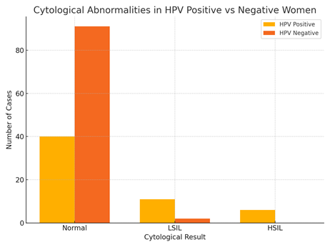 “PCR diagnostics greatly outperform cytology in early detection, especially in asymptomatic women.” — (Arias-Bujanda et al., 2018).Additionally, among the HPV-positive group, 15% exhibited LSIL and 5% had HSIL. Most HPV-negative women showed normal cytological profiles.
