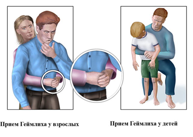 Рисунок 1. Прием Геймлиха у взрослых (слева), прием Геймлиха у детей старше года (справа) [2]