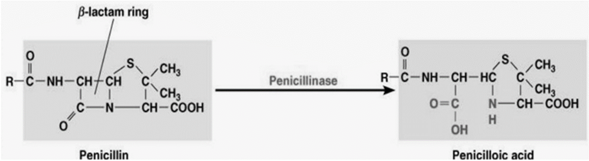 Рисунок 1. Схема реакции гидролиза β-лактамного кольца