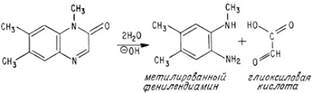 Рисунок 3. Фотохимическая деструкция рибофлавина с образованием метилированного фенилендиамина и глиоксиловой кислоты |