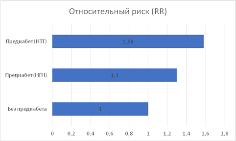 На рисунке 1 представлено сравнение относительного риска развития ХСН в зависимости от формы нарушения углеводного обмена, подтверждающее влияние НТГ как наиболее значимого предиктора.