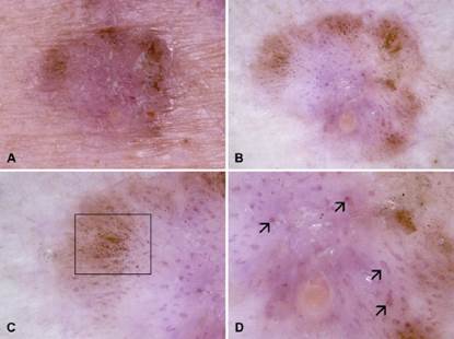Рисунок 1. Типичная дерматоскопическая картина болезни Боуэна (Harald Kittler MD, Journal of the American Academy of Dermatology, 2010)