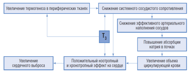 Рисунок 1. Влияние трийодтиронина на сердечно-сосудистую систему