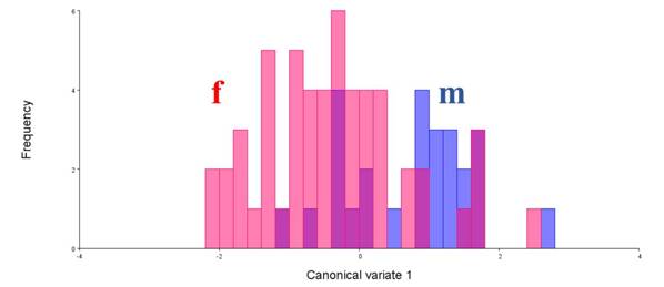Рисунок 5. Результаты CVA в аспекте полового диморфизма кистей рук