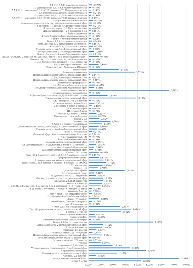 Рисунок 1. Результаты ВЭЖХ анализа, хронически загрязненной пестицидами почв
