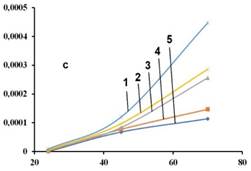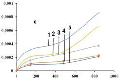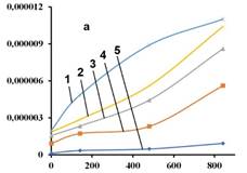 Прямолинейные участки, с изломами, на графических зависимостях рис. 1-3 подтверждают диффузионный (смешанный в местах изломов) контроль реакций окисления МoS2, установленный электрохимическим способом [4].