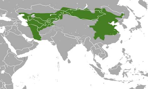 Рисунок 1. Территория распространения популяции зайца толай (Lepus tolai), https/en.wikipedia.org/wiki/List_of_leporids