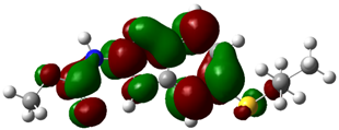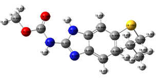 Figure-2 displays a graphical depiction of these values for the methyl N-(6-propylsulfanyl-1H-benzimidazol-2-yl) carbamate. Red brown indicates high electron density in the molecular orbital, whereas green indicates low electron density.