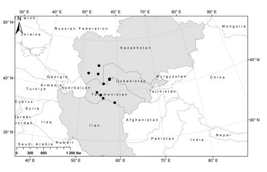 Материал собран в 2021-2024 гг. Маршрутные исследования охватили различные экотопы в центральной и южной частях Каракалпакского Усюрта.