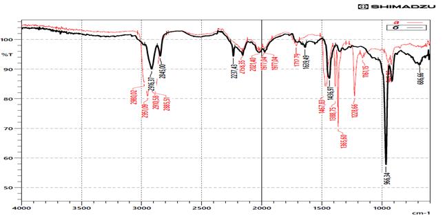 Figure 2 a/b. IR spectra of BSK (a) and oleo gel (b) based on BSK with MA