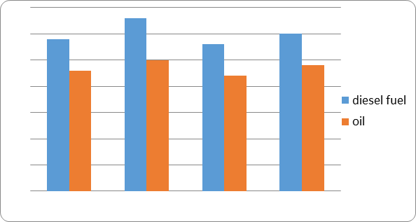 The absorption properties of sorbents for aqueous media are shown in Figure 4. Two types of petroleum products (diesel and crude oil) were used as representatives of petroleum products. The ability of BSK-based oleo gel to absorb petroleum products in the oil-water system can be seen. The presence of styrene in the BSK-based oleo gel created an increased surface area for the sorbent materials, resulting in increased oil absorption in molecules with such a structure. Oil absorption also depends on the concentration of the sorbent. In this case, the amount of sorbent was 0.5%. At the same time, the addition of more than 0.5% of the sorbent to the BSK-based oleo gel reduces the absorption capacity of oil, since oil products lead to a dense formation of the sorbent matrix and reduce the absorption of oil products. The amount of product absorbed in 60 minutes of the sorption process is reflected in the results in Figure 4.