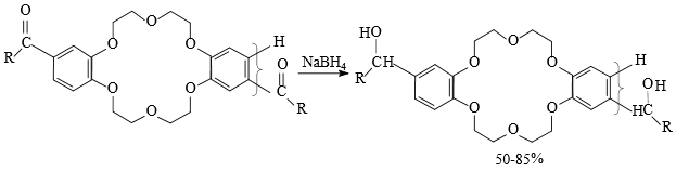 В литературе [23] описаны синтезы вторичных спиртов дибензо-18-краун-6 в 2 стадии: ацилирование дибензо-18-краун-6