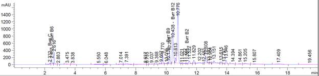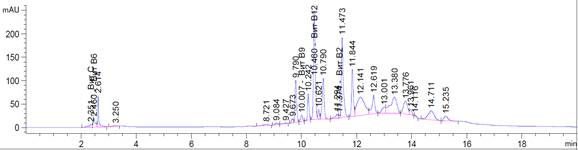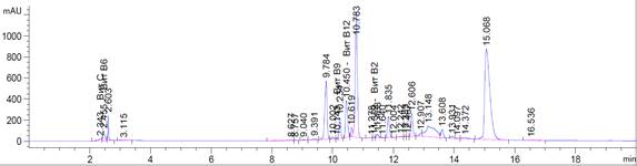 Рисунок 1. Хроматограмма Водорастворимых витаминов в листьях Lonicera nummularifolia