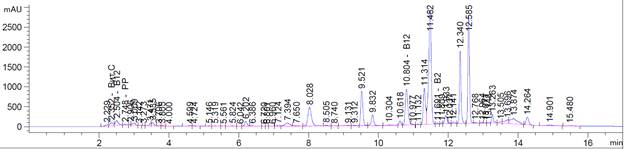 Рисунок 2. Хроматограмма Водорастворимые витамины в стебле Lonicera nummularifolia