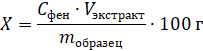 Cфен – концентрация фенольного соединения в экстракте, определённая методом ВЭЖХ, мг/л;