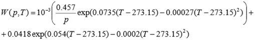 Аналитические зависимости влагосодержания природных газов W от давления р в паскалях и температуры Т являются модификациями формулы Бюкачека [25]: