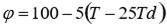 Взаимосвязь параметров влагосодержания – относительная влажность – точка росы показывает также полуэмпирическая формула