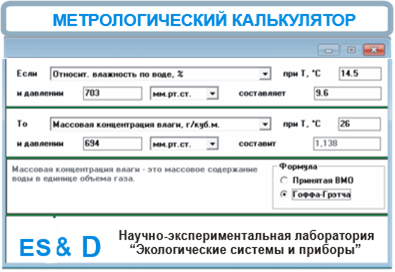 Для более простого пересчета относительной влажности газа в другие параметры влагосодержания, применяется формула Гоффа-Грэтча, известная как формула для расчета влажности воздуха по психрометру.