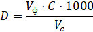 Здесь Vф – общий объем (см3) фильтрата, прошедшего через сульфокатионит до появления ионов рабочего раствора; С – концентрация рабочего раствора (г•(см3)-1); Vc – объем сульфокатионита (см3).