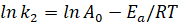 где: A0 – экспоненциальный множитель, Ea – энергия активации, а k2 (г·(мг мин)-1) – кинетическая константа псевдовторого порядка при различных температурах. Для нахождения энергии активации Ea строится график lnk2 и 1/T [2].