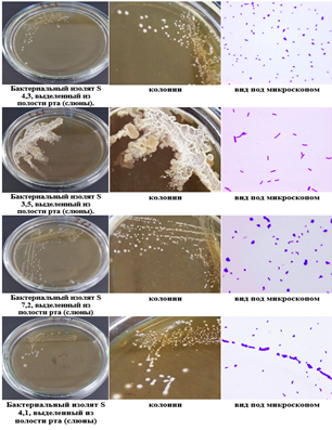 Таким образом, для изучения микробиома пищеварительной системы крупного рогатого скота, были выделены и определены 16 бактериальных изолятов из рубца, слюны и сычуга. Определены морфологические характеристики всех выделенных бактериальных изолятов. Исследования показали микробиологическое разнообразие выделенных бактерий как в виде кокков, так и палочковидных бактерий, которые представляют огромный интерес для дальнейших фундаментальных и прикладных исследований.