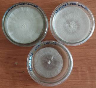 All media were incubated in Petri dishes at a temperature of 25±1°C. Mycelial growth was monitored daily, the colony diameter was measured, and the growth rate was calculated [1], [2].