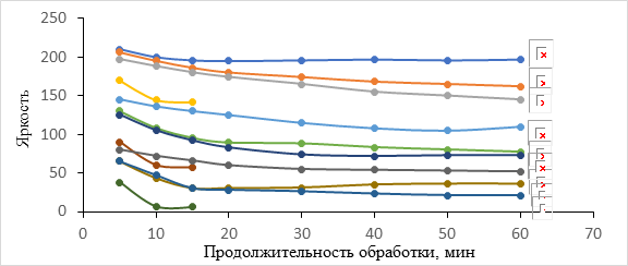 Таким образом, наилучшие условия для синтеза металлокомплексов в структуре хлопкового текстильного материала достигаются при температуре 98 °C, кислотности среды pH 3,6–4,0 и продолжительности воздействия от 5 до 7 минут.