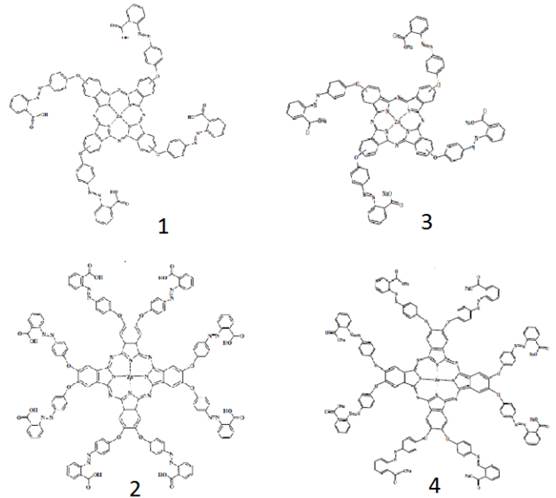 Figure 1. Derivatives of the zinc phthalocyanine complex containing octa (phenoxy phenyl) diazenylbenzoic acid residues