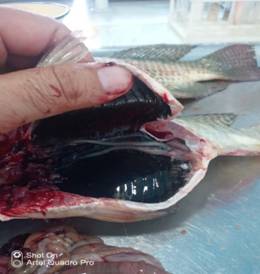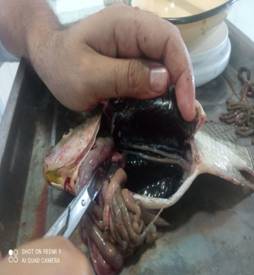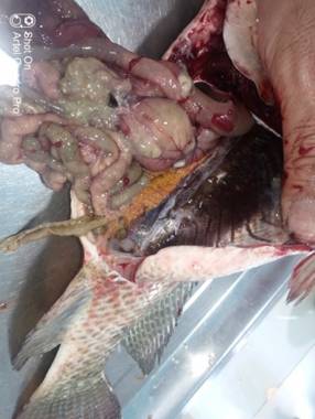 * A.R. Kurbanov conducts necropsy of tilapia during bonitation.
