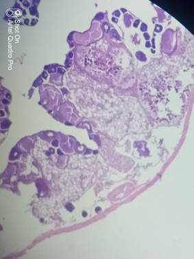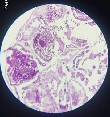 By September (six-month-old age), gonads of both sexes transitioned to the third stage of maturity. Visual examination confirmed this observation, and histological sections revealed larger previtellogenic oocytes with vacuoles typical of vitellogenesis. [5]