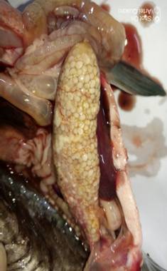 Figure 2. Male gonads (left) of tilapia at the second stage of maturity