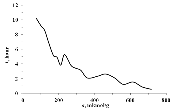 Figure 4. Equilibrium time of ammonia molecule adsorption on Aerosil