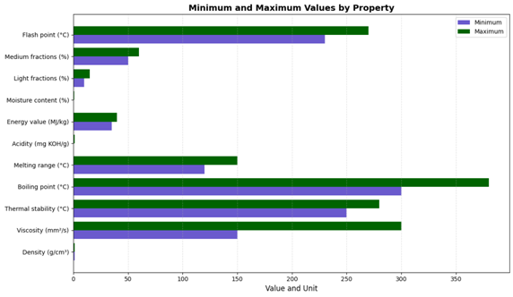 The resin has a density of 1.05-1.15 g/cm³ and a viscosity of 150-300 mm²/s. It contains heavy and high molecular weight hydrocarbons, with a thermal stability range of 250-280 °C, boiling point of 300-380 °C, liquefaction temperature of 120-150 °C, and an energy value of 35-40 MJ/kg.
