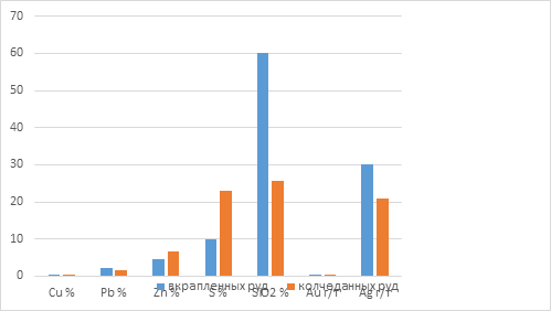Рисунок 2. Диаграмма исходных полиметаллических руд Хандиза