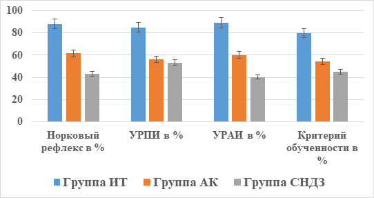 Рисунок 2. Когнитивные параметры животных с моделью СНДЗ
