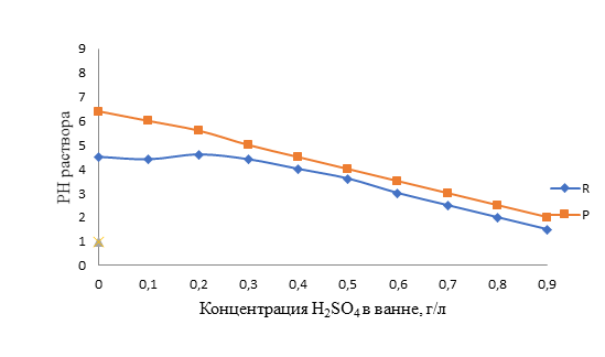 Рисунок 4. Зависимость влияния рН среды на образование металлокомплексов в структуре хлопковой ткани от концентрации кислоты