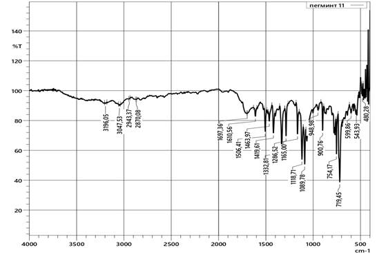 В данной статье с использованием ИК-спектроскопии были исследованы фталоцианиновые пигменты, синтезированные на основе кобальта и кальция. Результаты спектрального анализа позволили определить колебательные частоты функциональных групп и ароматического кольца в составе пигментов. Было установлено, что координационные связи ионов кобальта и кальция, выступающих в роли центральных металлов, значительно изменяют колебательные частоты молекулы. Зафиксированы пики, соответствующие ароматическим связям C–H, C=C, C=N, а также металл–азотным связям. Высокая термическая и химическая устойчивость пигментов повышает их практическую значимость для промышленного применения.