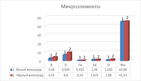 Рисунок 2. Важнейшие микроэлементы соков белого и чёрного винограда