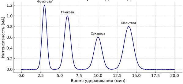 На рисунке 1представлена типичная схема разделения сахаров меда методом ВЭЖХ.